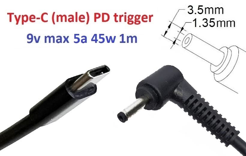 Adapter to 9v (max 5a, 45w) 3.5x1.35mm 1m from USB Type-C (male) Power Delivery PD trigger (A class) 1 day war.