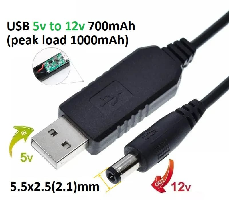 Adapter cable for router USB 5v to DC 12v 1m 5.5x2.1mm (A class) 1 day war.
