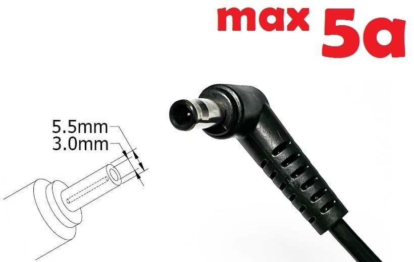 Dc cable for power adapter 5.5x3.0 or 5.0x3.0mm (+pin) (5a) (1.2m) (A class) 1 day war.
