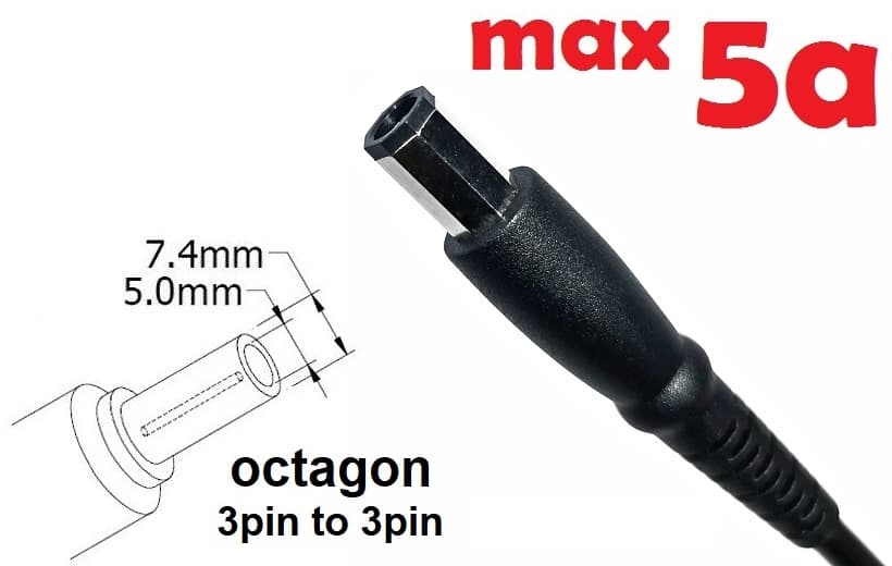 Dc cable for power adapter 7.4x5.0mm (+pin) octagon (5a) (1.2m) (A class) 1 day war.
