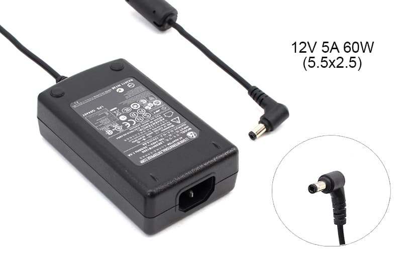 This power supply is designed for a maximum power of 60w (Watts), at a voltage of 12v (Volts) and a current strength of up to a maximum of 5a (Amperes).